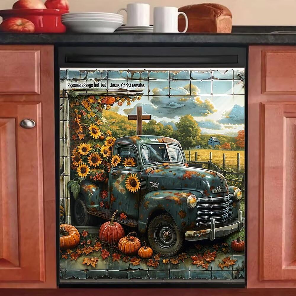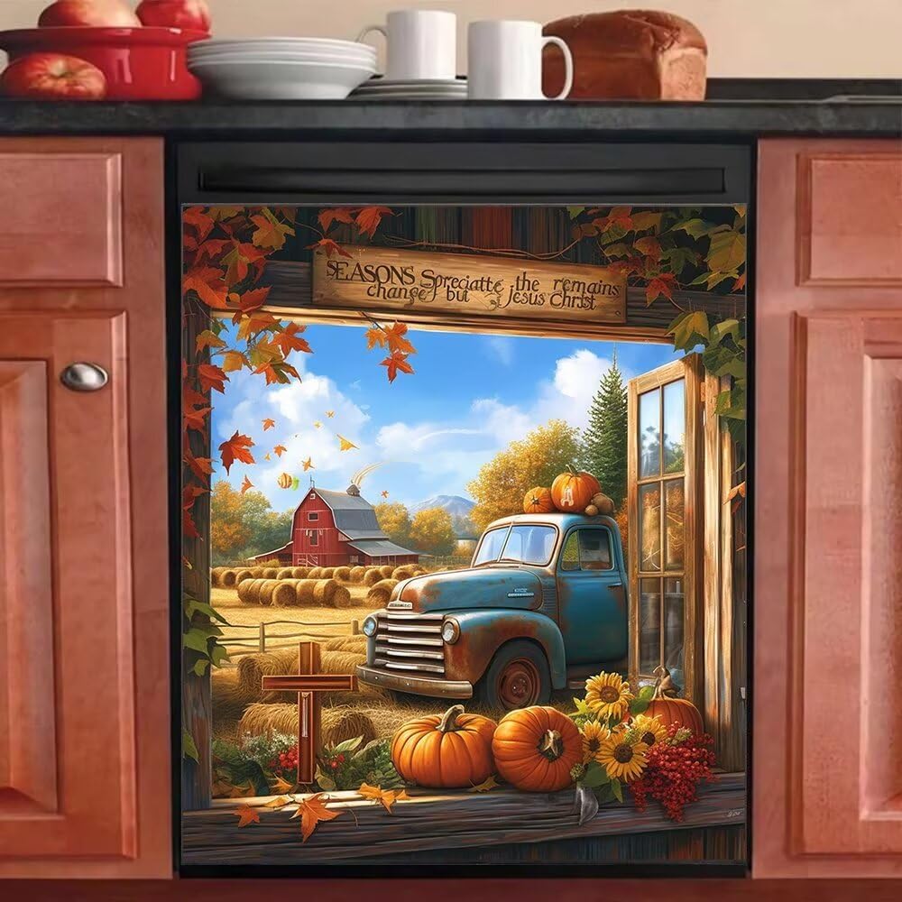 【✔Size】Our dishwasher decorative cover has 23 x 30 inches, if the size doesn't fit your machine, you can easily trim it to the size you need.【✔Material】The surface of our magnetic dishwasher cover is made of PVC with high gloss to prevent fading, scratches, water, tears and bubbles.【✔Multiple Uses】You can use it on your dishwasher, but also on your refrigerator, washing machine, dryer and many other appliances with magnetism.【✔Features】It can hide scratches, dents or other unsightly marks on your dishwasher. Beautiful and waterproof, it is the best choice for decorating your kitchen.【✔Design】A variety of beautiful patterns for you to choose from to add character to your kitchen.【★Note】Receive the product rewinding and then sticky, so that the magnetism can be restored; Not suitable for stainless steel surfaces!